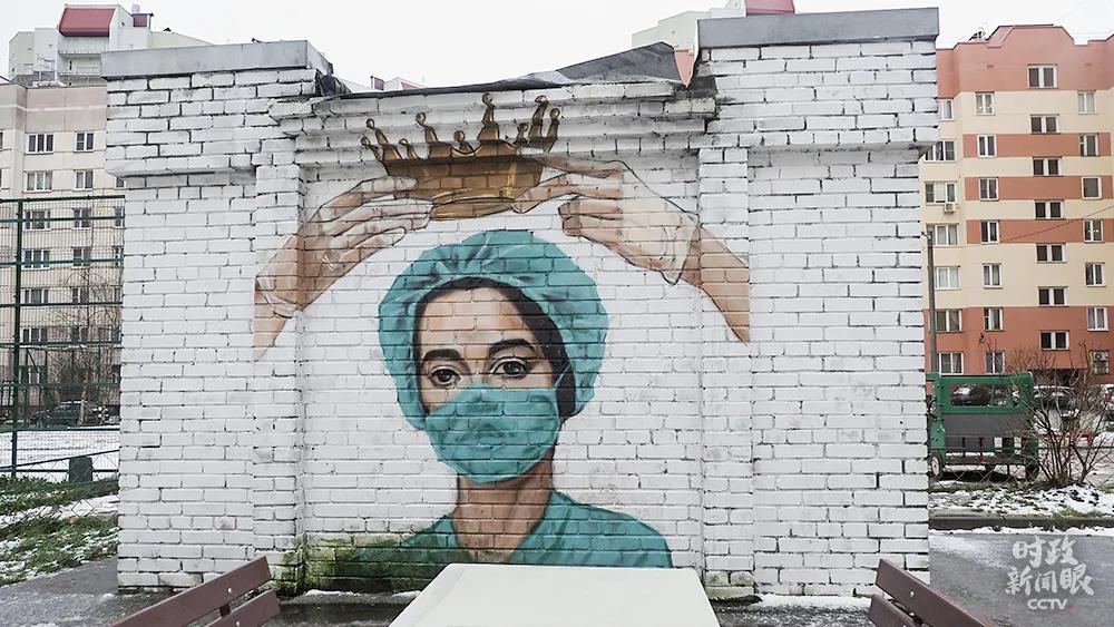 △这是俄罗斯圣彼得堡市民创作的涂鸦画,致敬抗击新冠疫情的医护工作者。