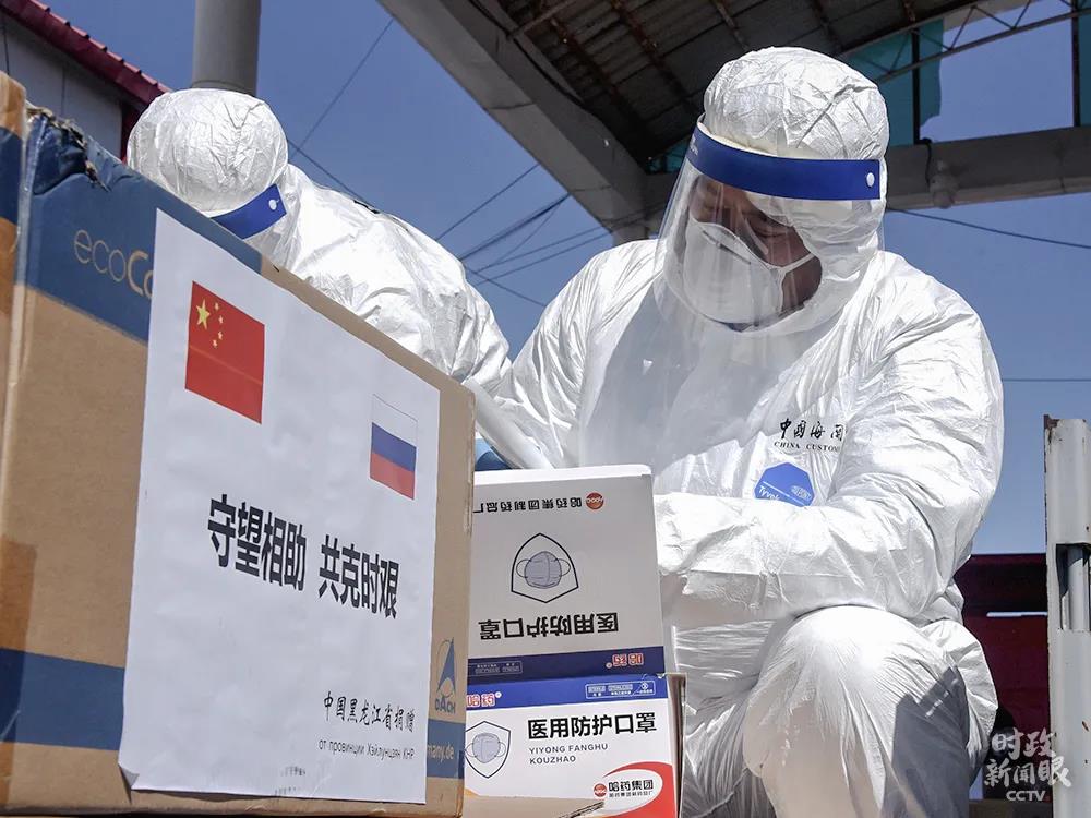 △今年4月份,中国黑龙江向俄罗斯捐赠医用口罩、防护服、隔离服等抗疫物资。