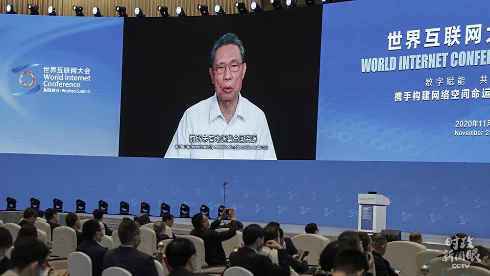 △11月23日,2020年世界互联网大会在浙江乌镇开幕,钟南山通过视频连线在“数字经济与科技抗疫”主论坛上发言。