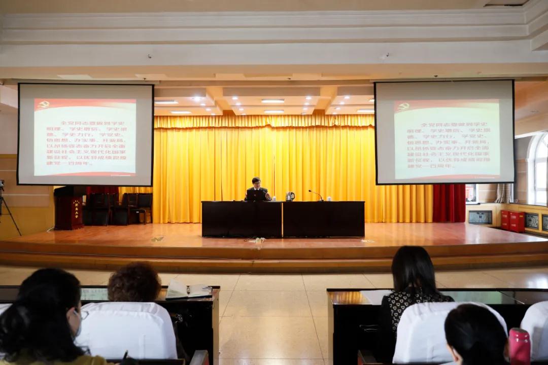 为庆祝中国共产党成立100周年,重温革命历史,弘扬爱国精神,帮助全校党员干部师生深入了解中国共产党在延安十三年的奋斗历程、辉煌业绩和经验启示,增强民族自豪感与民族自信心。4月7日,我校开展党史学习教育宣讲报告会,校党委副书记、副校长张天石作了题为《中共中央在延安十三年》的宣讲。全校副科级以上党员干部、师生代表参加了宣讲报告会。