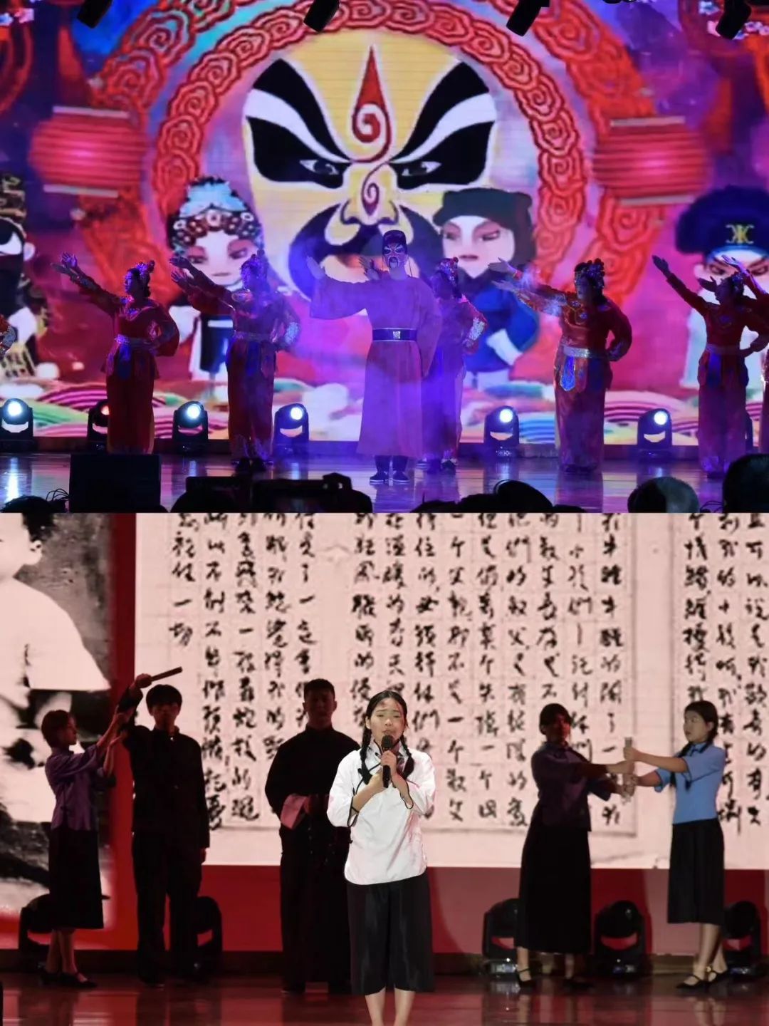本次活动共展出8个学院选报的朗诵、话剧等精彩节目,并对大赛期间涌现出的优秀学生、教职工和优秀组织单位进行表彰。《唐诗里的中国》用情景诗朗诵的形式展现诗歌里的盛唐和诗歌里的中国;《华夏》以歌曲和舞蹈相配合唱出中国精神;《SA乐队快板——中国话》表演将传统说唱艺术和现代流行音乐相结合,创意十足;《觉醒年代》和《红色家书》以舞台剧的形式展现百年前革命烈士的信仰与力量;《红船》和《读中国》通过朗诵展现了中国人民敢为人先的首创精神和百折不挠的奋斗精神;《课桌操表演》充分展示出我校学生的青春活力。此外,学校教师代表带来朗诵《生命之花——谨此献给共和国的英雄们》,宿舍管理老师上演由真实故事改编的小品《平凡的一天》,活动在《说唱脸谱》的掌声中落下帷幕。