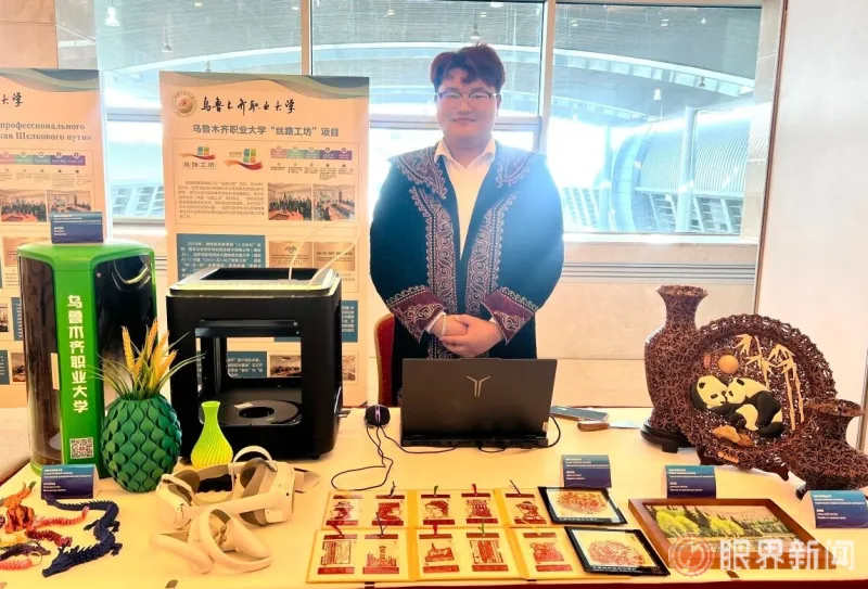 5月13日,2025数智赋能职业教育融合创新专题研讨会现场,乌鲁木齐职业大学留学生展示3D打印技术。记者王煜摄