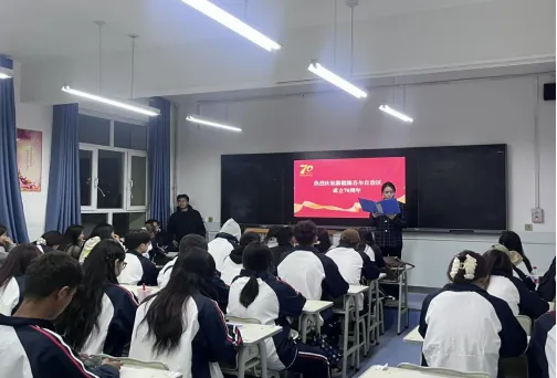 9月25日,我校“一站式学生服务中心”宣讲团的20余名学生宣讲员走进传媒学院各班级,开展“热烈庆祝新疆维吾尔自治区成立70周年”主题宣讲活动。